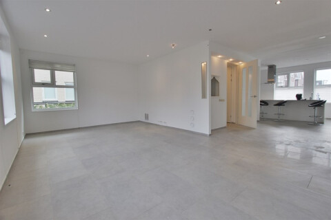 Entrance hall with on the left side a laundry room. in the entrance a separate toilet with sink. Spacious living with modern kitchen equipped with all built-in appliances. From living room access to garden. ground floor bedroom with sink.