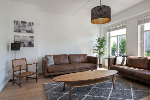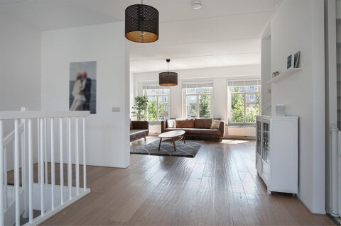 Vanuit de hal en de woonkeuken is de woonkamer bereikbaar. De lichte woning beschikt over een fraai uitzicht over de stadsgracht. De woonkamer heeft een mooie massief eikenhouten parketvloer.